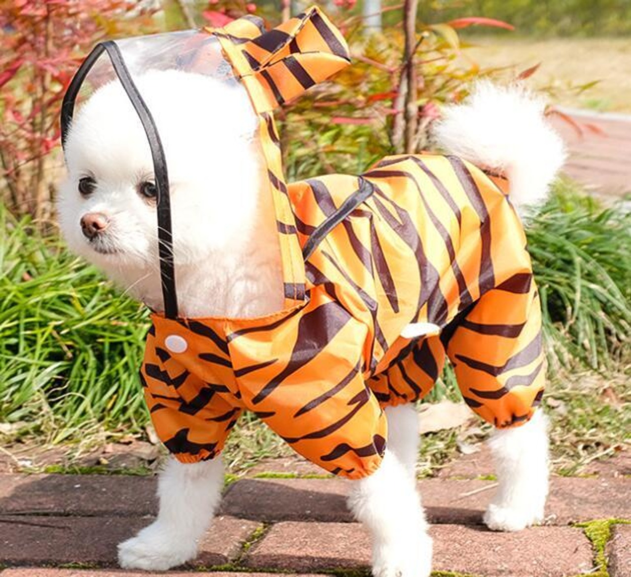 トラ柄が特徴的で可愛いこのレインコート、雨の日でも一緒におしゃれを楽しむことが出来ます★